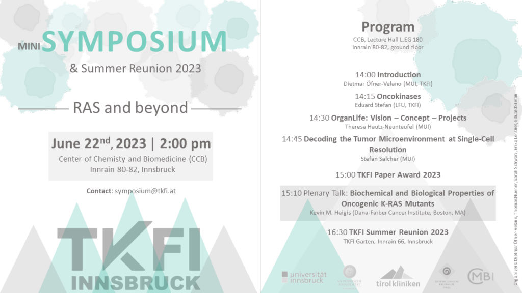The Tyrolean Cancer Research Institute/Tiroler Krebsforschungsinstitut (TKFI) warmly thanks all donors of the Raiffeisen-Landesbank (RLB) for a generous Christmas donation within the framework of the RLB-MitarbiterInnen-Sozialaktion 2023 (Employees’ Social Action 2023) in support of our charitable institute. Support like this is crucial for our research endeavors. Therefore, we are extremely grateful for the contributions of…